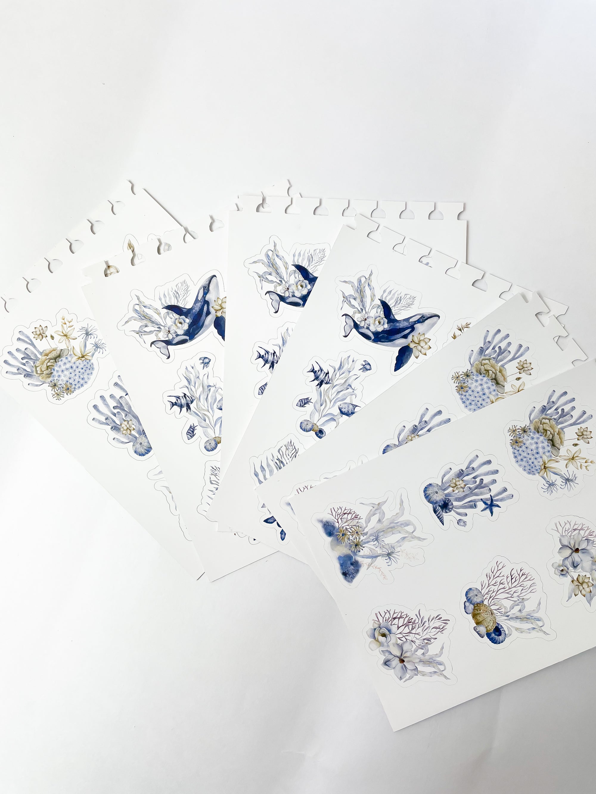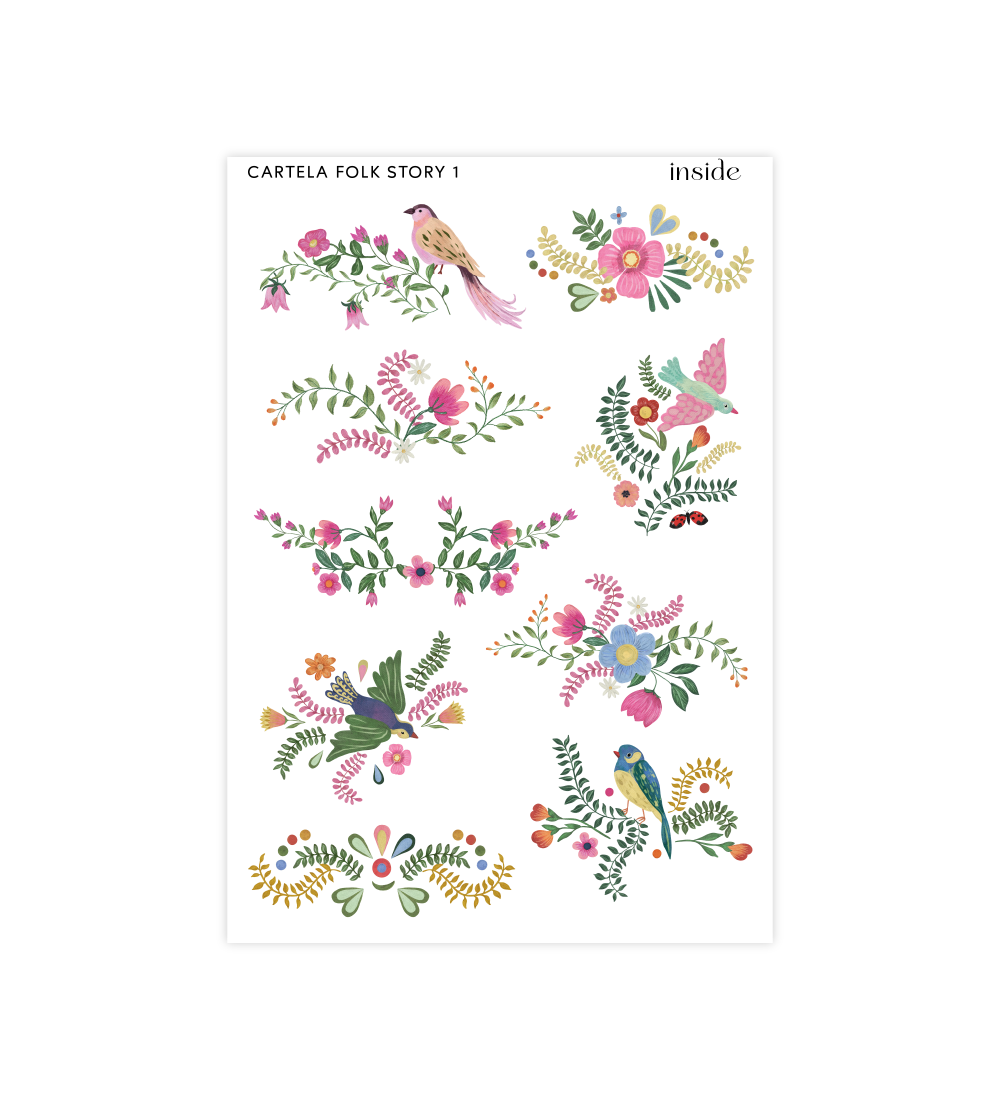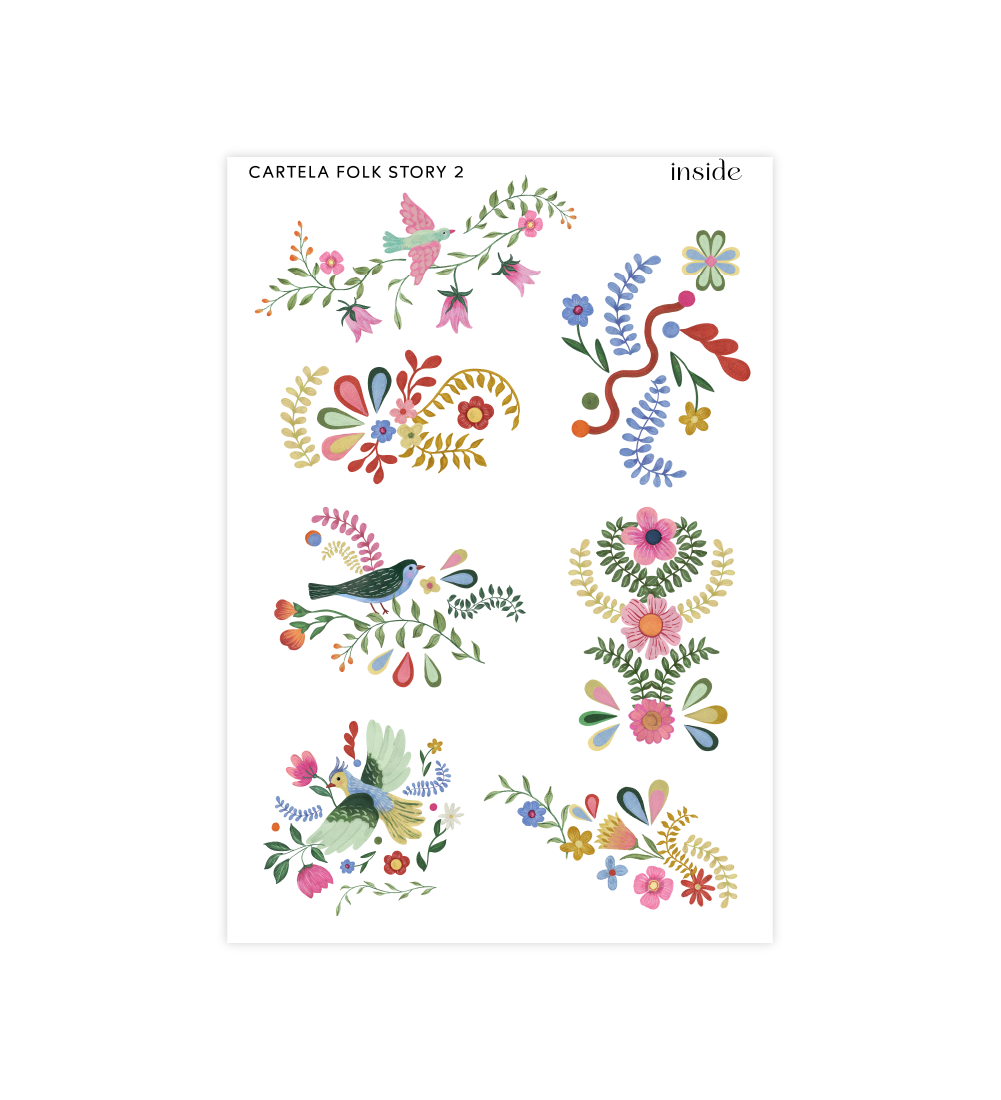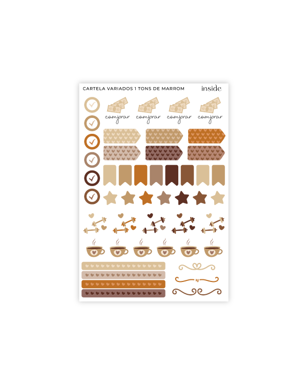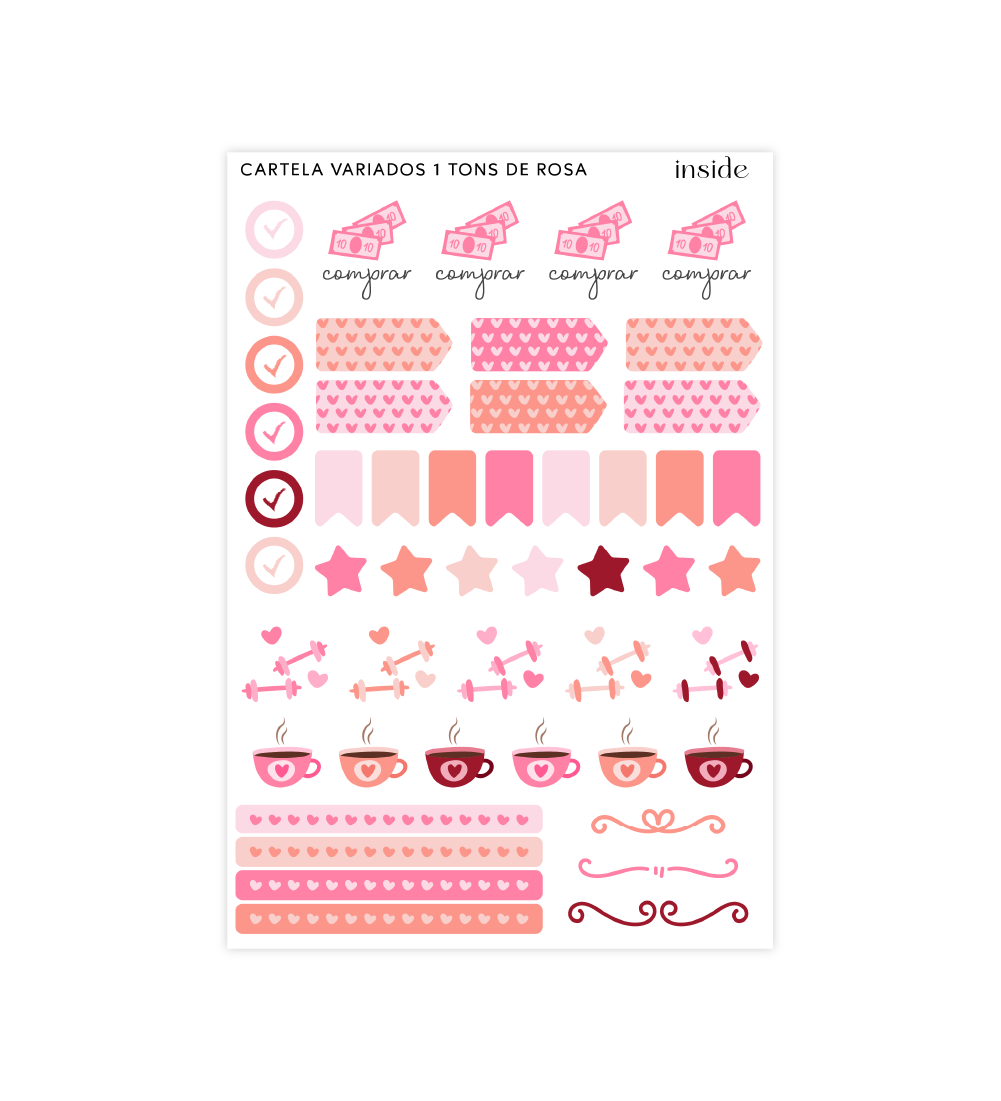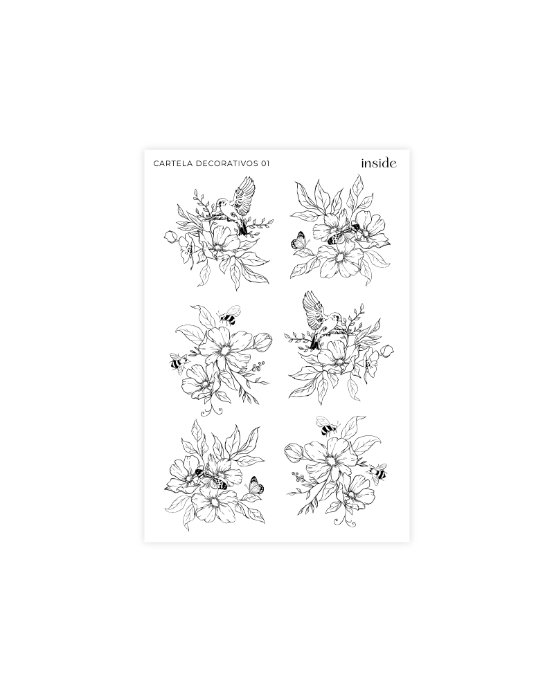 Nossas cartelas de adesivos são bem grandes — um pouco menores que uma folha A5, tamanho estratégico para que caibam nos bolsos dos cadernos Mini e Colegial. Você pode escolher qualquer uma entre 5 opções de tipos de papel: Comum, Transparente, Pólen, Holográfico e Estrelas Holográficas.
