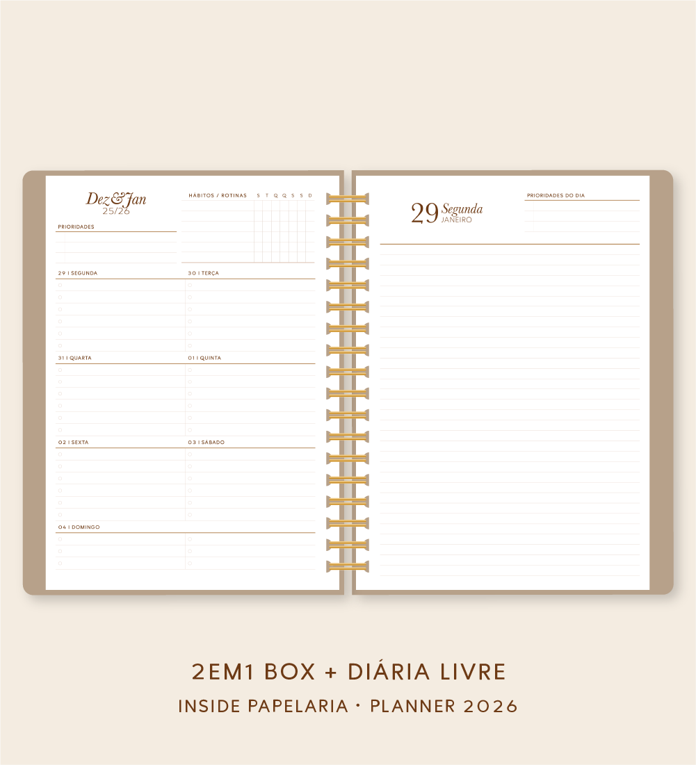 2em1 Box + Diária Livre 2026 Datado | Meses Contínuos (somente semanas e dias) - Insert