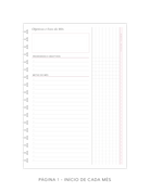 - 1 página "Objetivos e Foco do Mês";