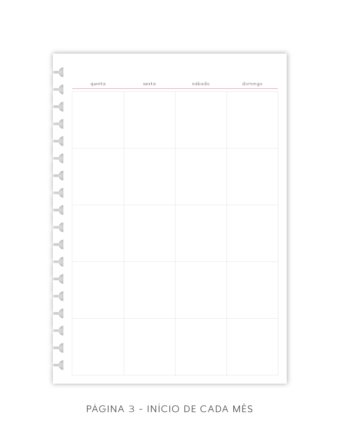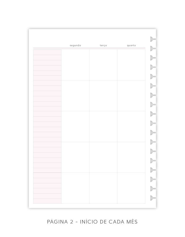 - Todas as páginas repetem-se no total 3 vezes, sendo possível planejar 3 meses com esse refil.