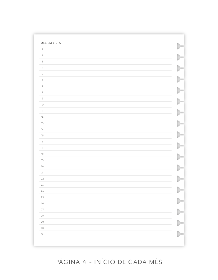 - 1 página "Mês em Lista";
