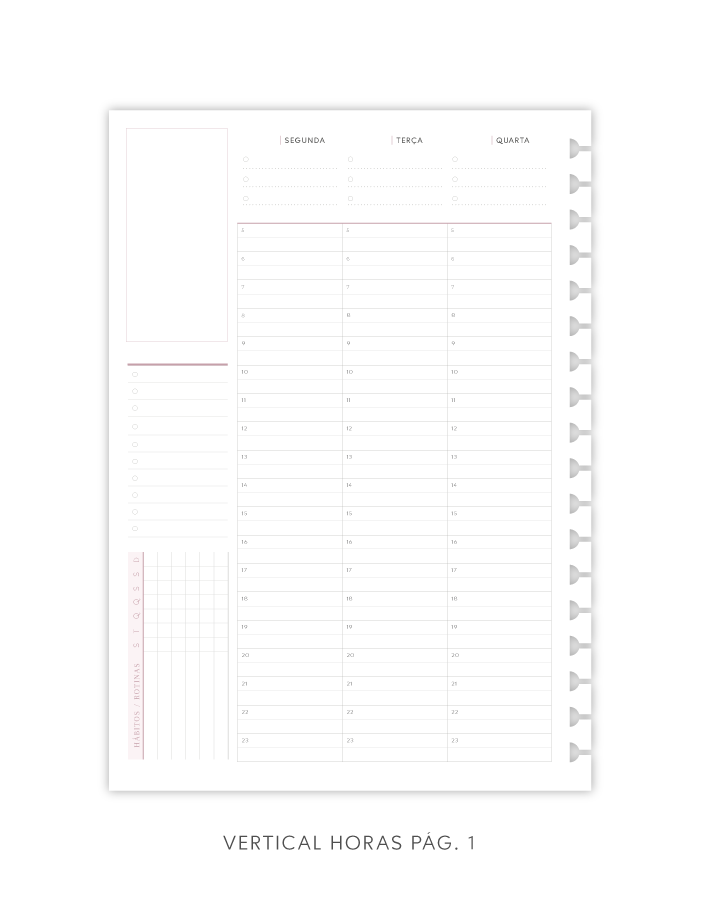 - Todas as páginas repetem-se no total 7 vezes, sendo possível planejar 7 meses com esse refil.