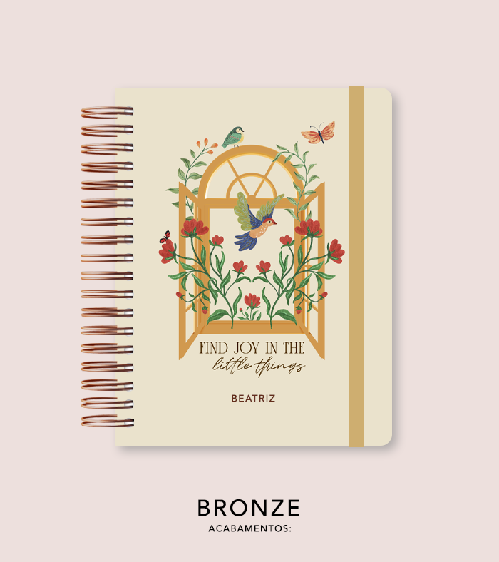 - Acabamentos Metálicos: Escolha a cor do Wire-O e adicione cantoneiras que, além de protegerem as quinas do seu caderno, conferem um visual refinado e profissional.
