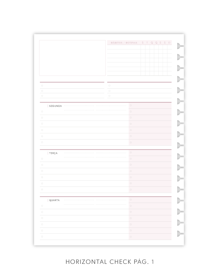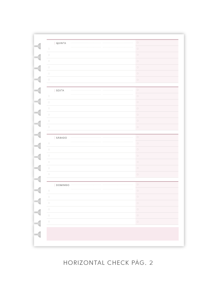 - Todas as páginas repetem-se no total 7 vezes, sendo possível planejar 7 meses com esse refil.