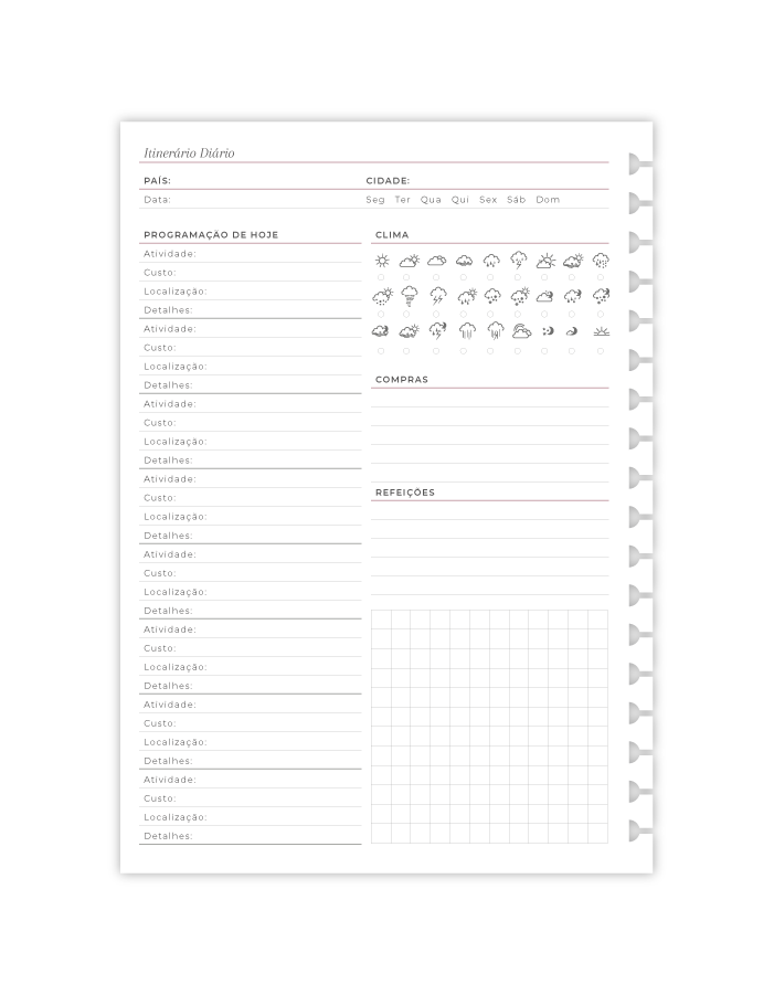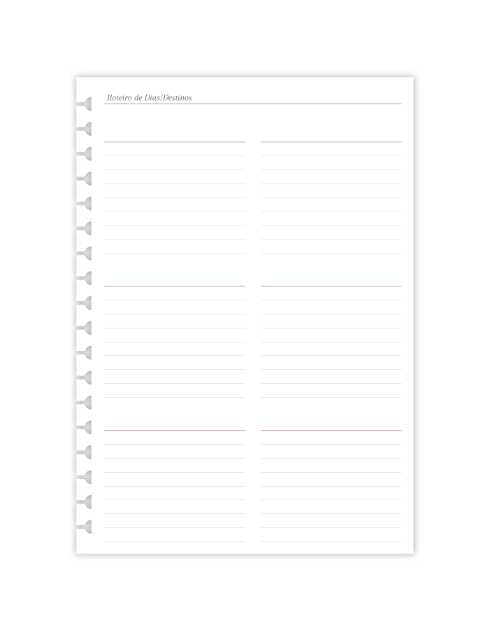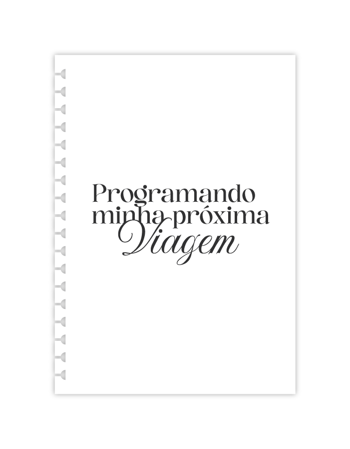 E então as páginas de Visão Geral da Viagem, Lembranças da Viagem, Roteiro de Dias/Destinos, Itinerário Diário e a pontilhada repetem-se.