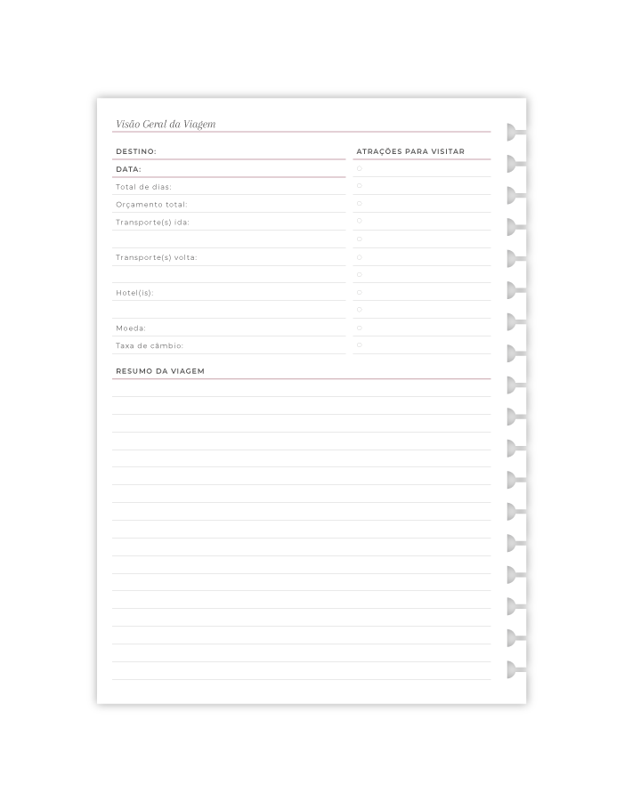 - 1 página de "Visão Geral da Viagem";