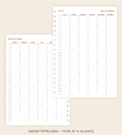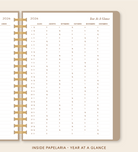 - 1 página de rosto, 2 páginas de Year At a Glance e 1 página pontilhada.